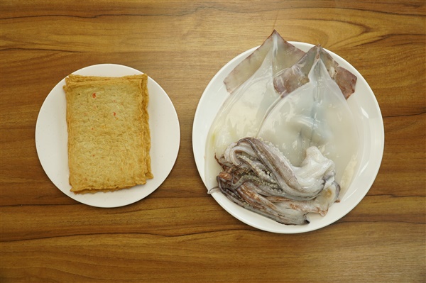 오징어 2마리, 어묵 4장, 무 200g,