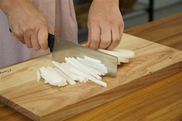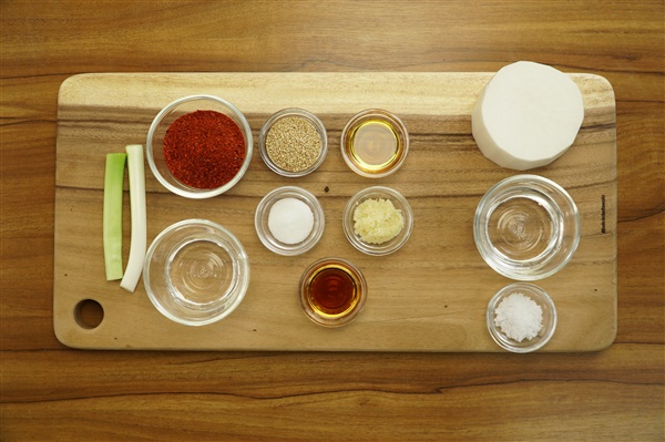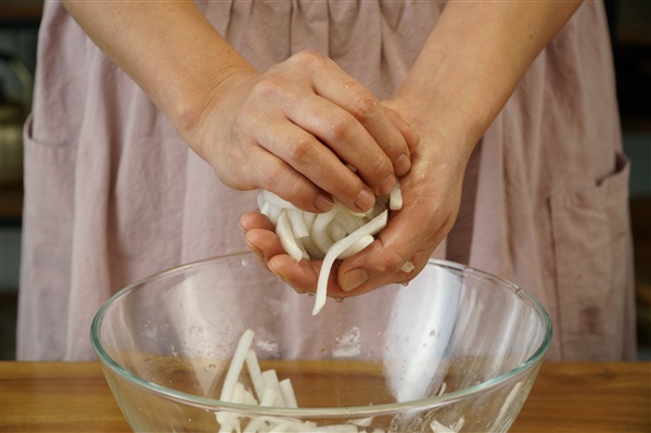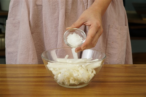 3. 채 썬 무에 물엿과 소금을 넣고