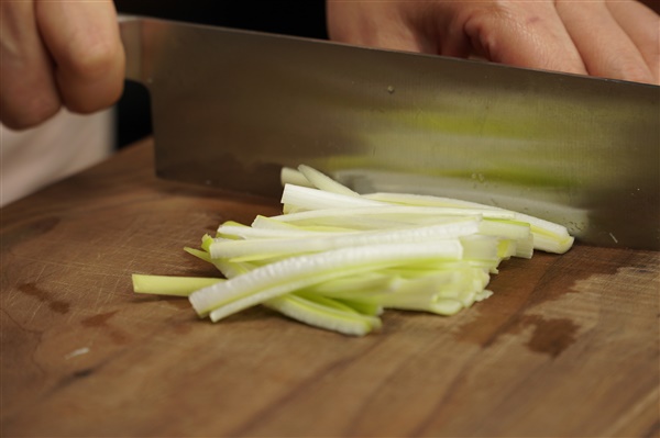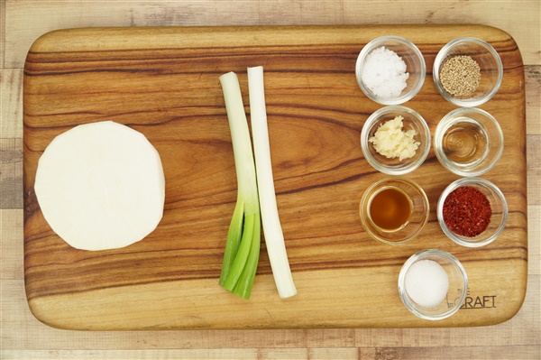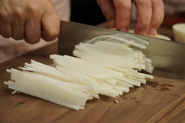 1. 무와 대파는 얇게 채 썰어주세요