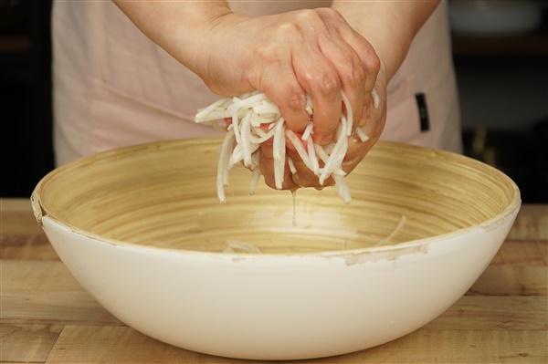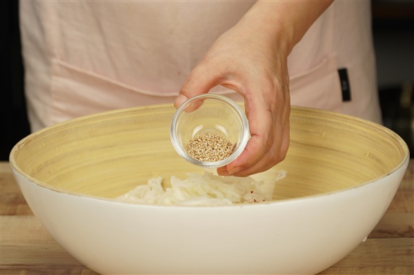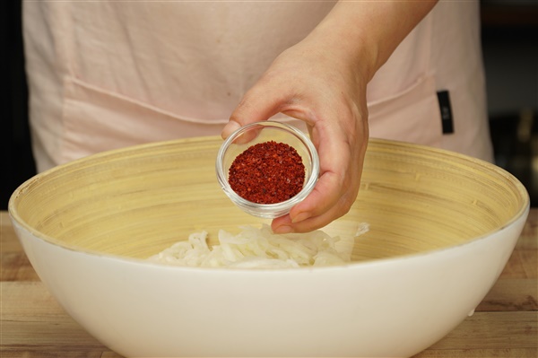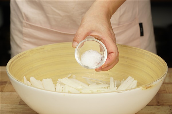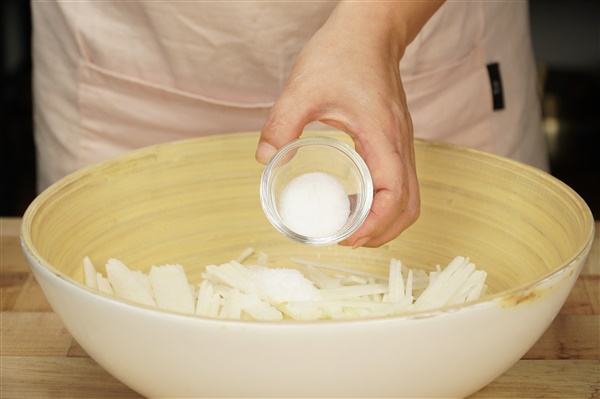 2. 얇게 썬 무는 설탕과 소금에 10분간 절인 뒤