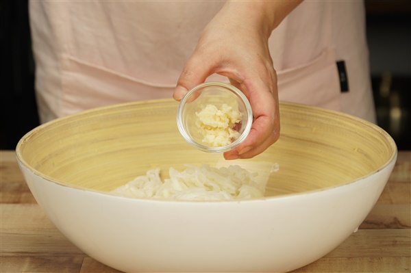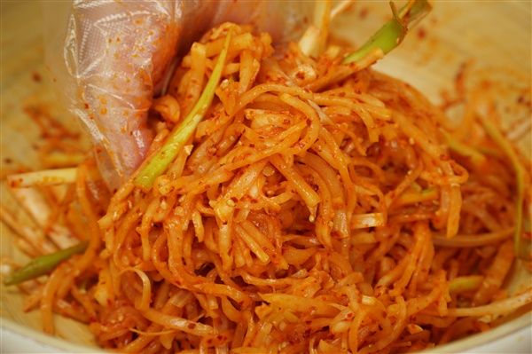 3. 물기를 제거한 무에 나머지 양념을 넣어 고루