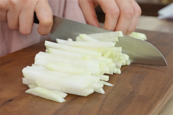 2. 표고버섯과 무를 채 썰어주고