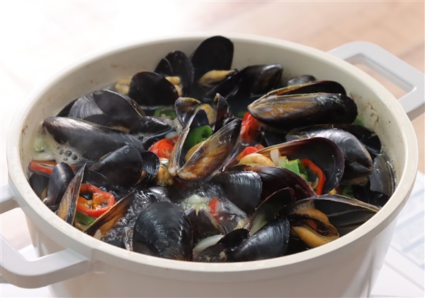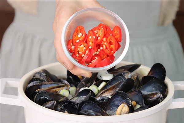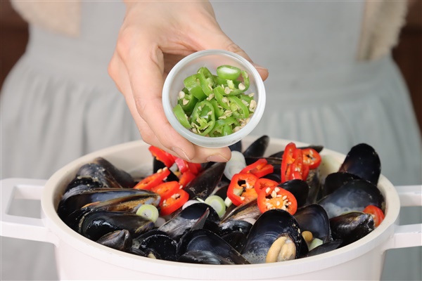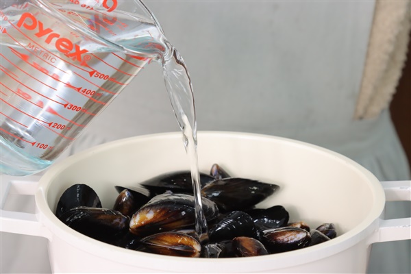 5. 냄비에 홍합을 넣은뒤