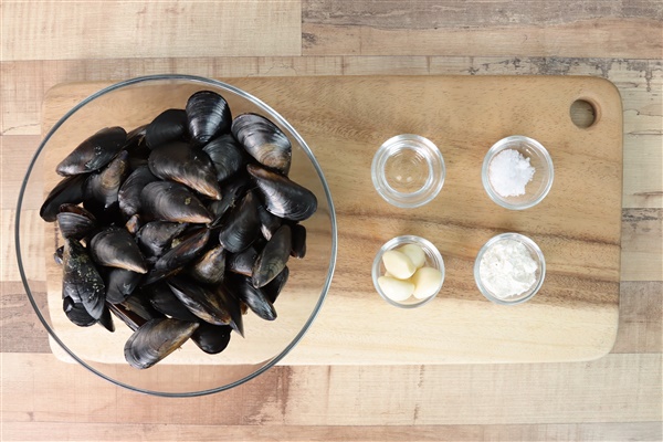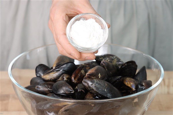 홍합 900g, 밀가루 1큰술,