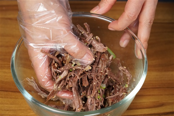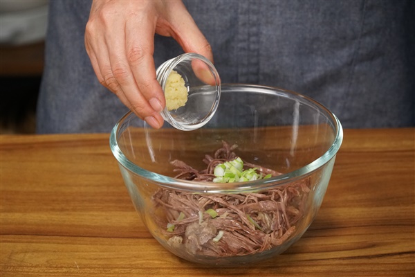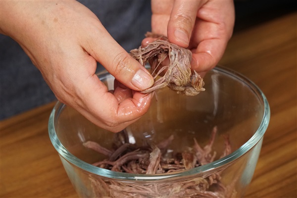 4. 한 김 식힌 고기는 결대로 찢어 주고