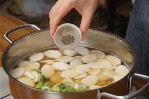 8. 떡국떡이 보글보글 끓어 떠오르기 시작하면