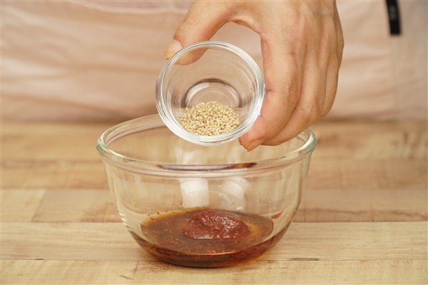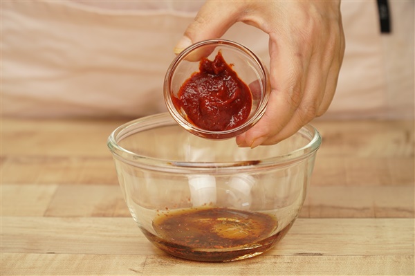 식초 2/3큰술, 고추장 2/3큰술, 올리고당 1큰술,