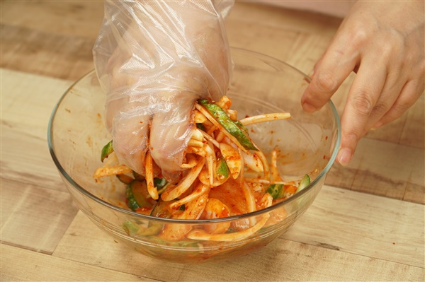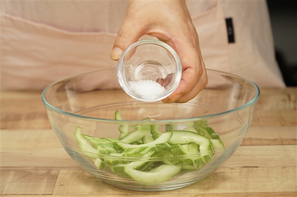 3. 오이는 소금에 버무려 10분 정도 절인 뒤 면포에