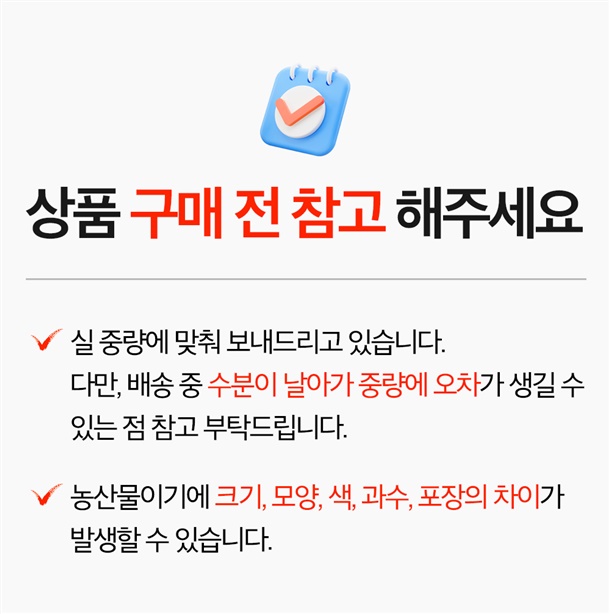 · 교환/반품 신청은 배송완료 후 3일 이내에 접수 부탁드립니다.