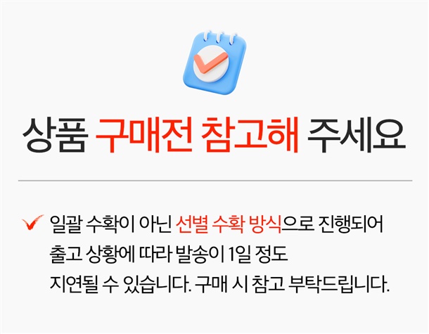 · 예약 발송 상품은 표기된 발송 시작일부터 순차적으로 출고됩니다.