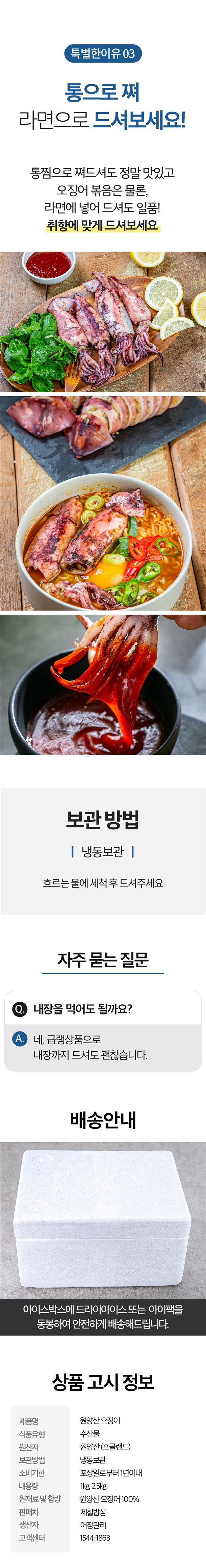 조업 후 급냉! 싱싱한 원양산 오징어 1kg