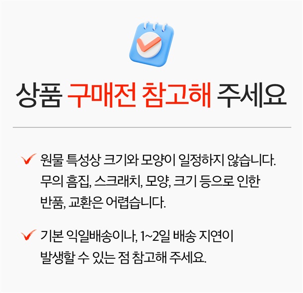 · 교환/반품 신청은 배송완료 후 3일 이내에 접수 부탁드립니다.
