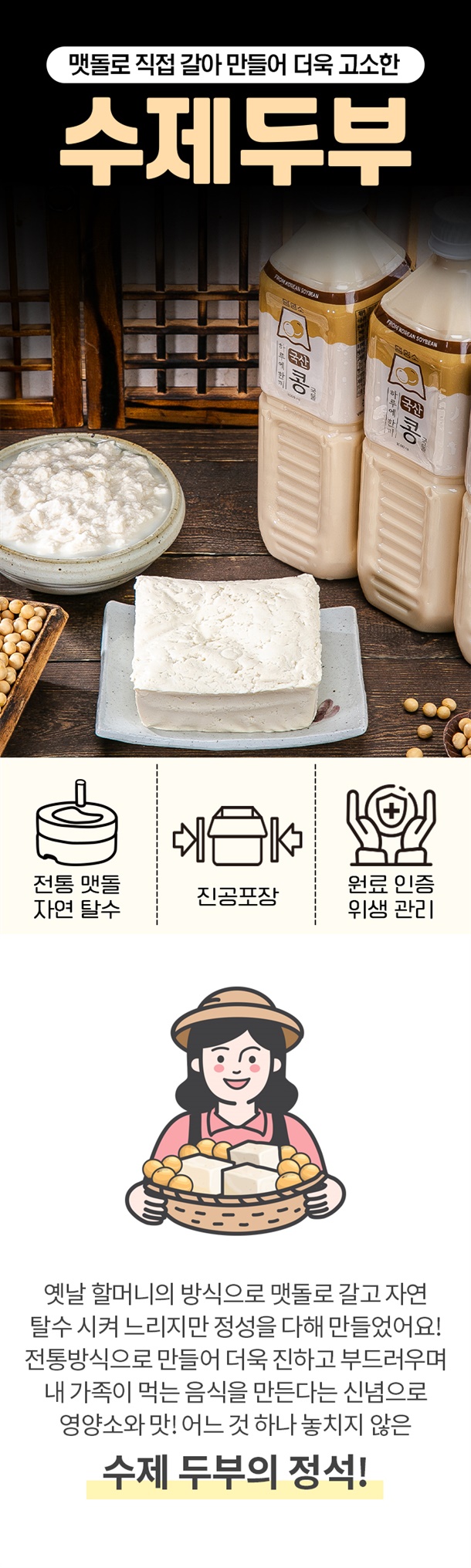 [100명 한정수량 특가] 맷돌로 직접 갈아 만든 고소한 수제두부
