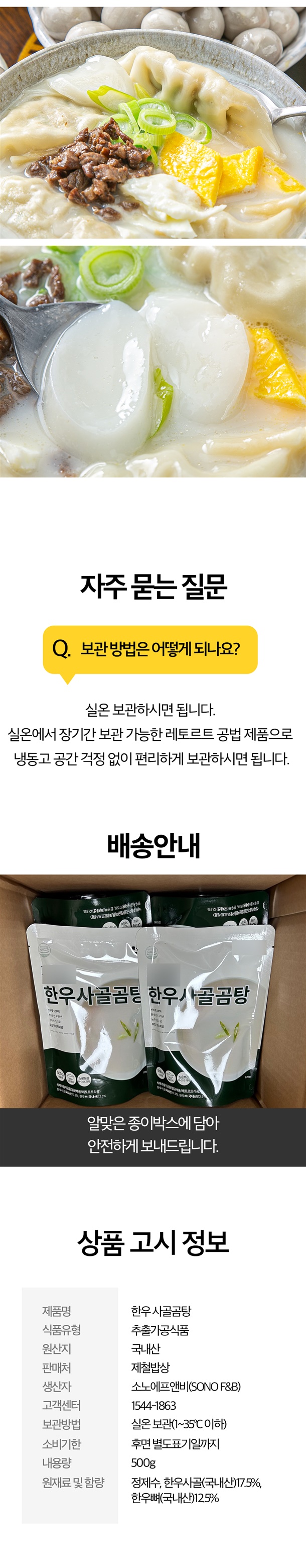 전통 국내산 한우 가마솥 사골곰탕 2.5kg!