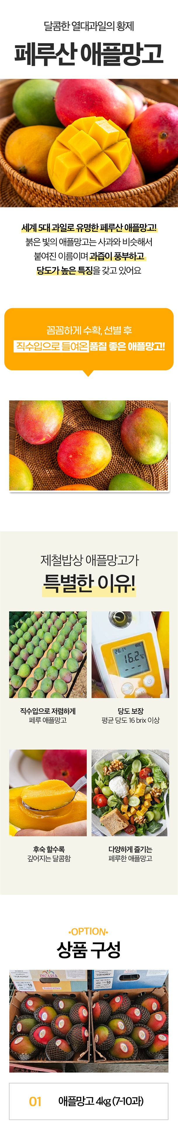 [평균 15브릭스] 페루 애플망고 4kg 39,900원!