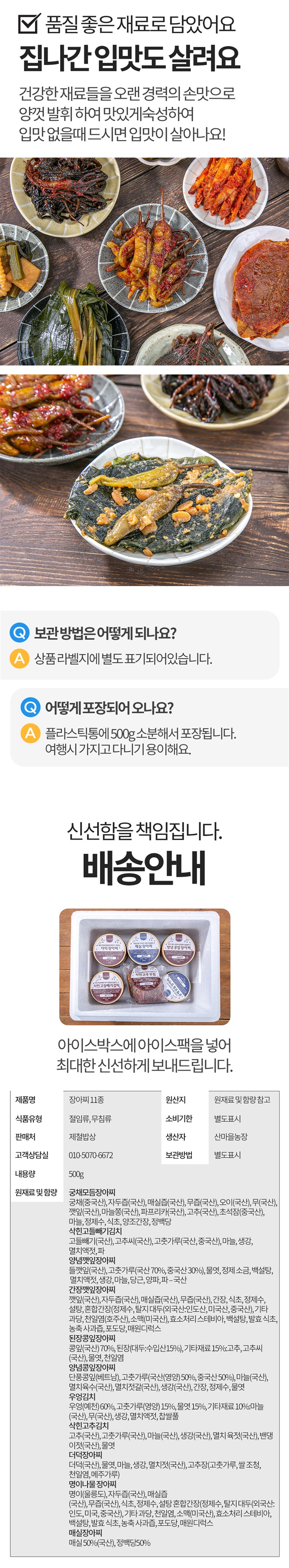 18년경력 명인의 수제 장아찌11종