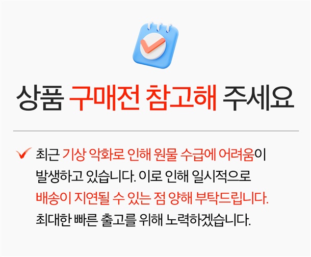· 배송비 : 3,000원(7개 마다 기본배송비 반복 부과)
