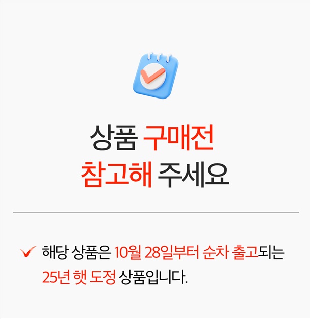 · 예약 발송 상품은 표기된 발송 시작일부터 순차적으로 출고됩니다.